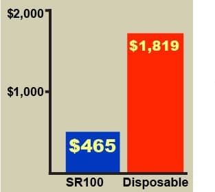 NOTE: in the examples below, we have presupposed that the SR100 has a working life of 2 years. We have made the calculations based on the masks being used 210 days of the year.